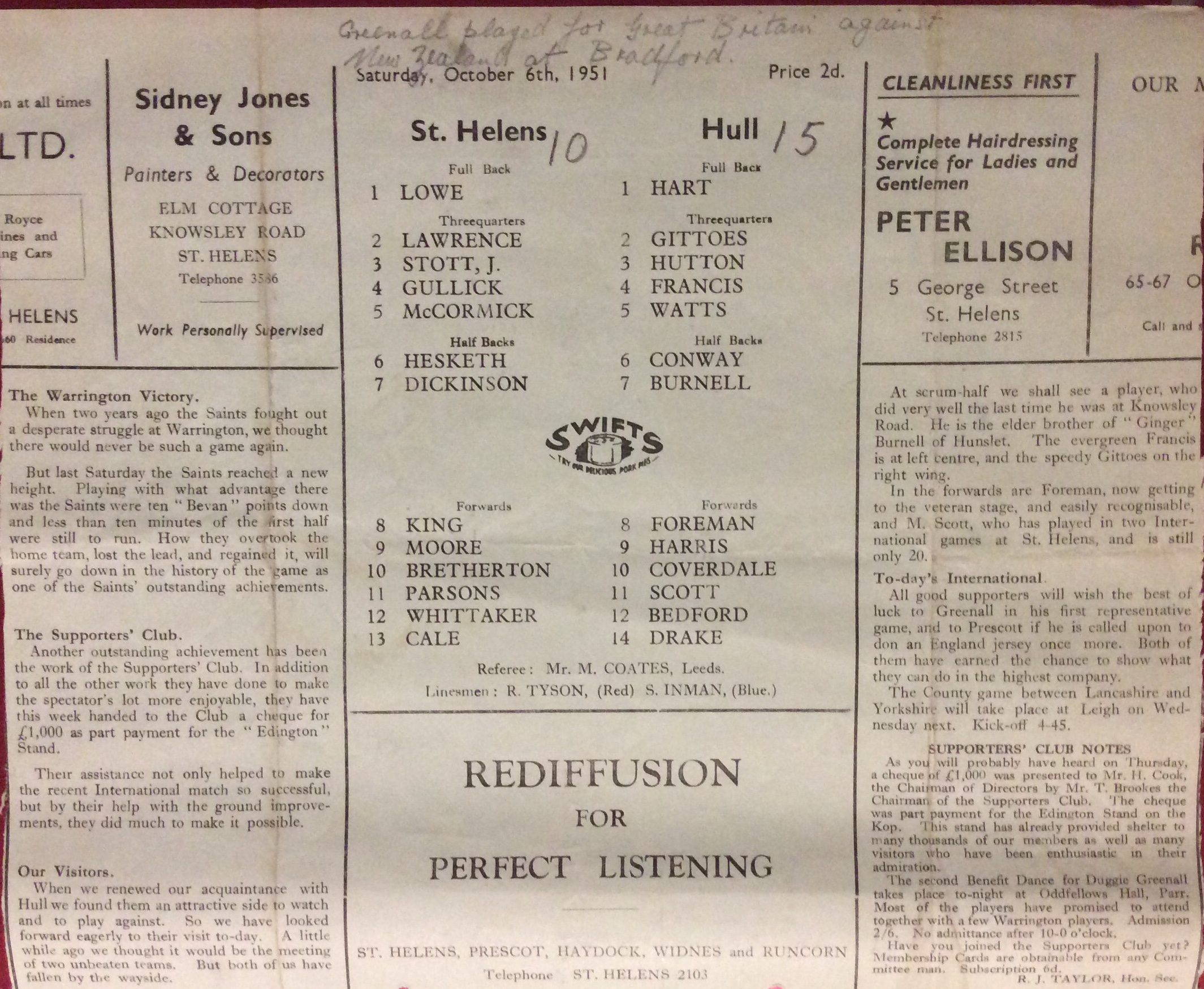 | COACH : Emlyn Jenkins (1951-01-20 : 1952-01-12 ) |