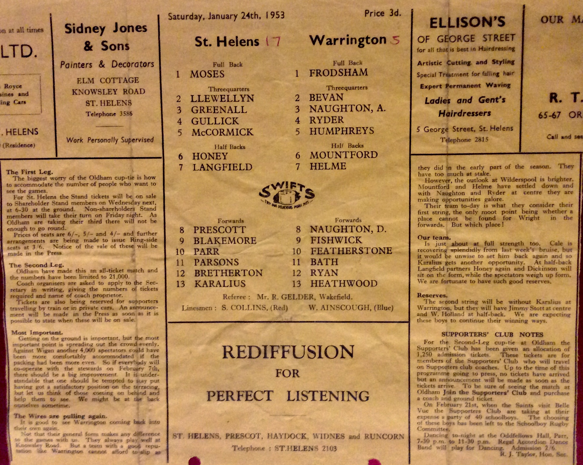 | COACH : Jim Sullivan (1952-08-01 : 1959-07-31 ) |