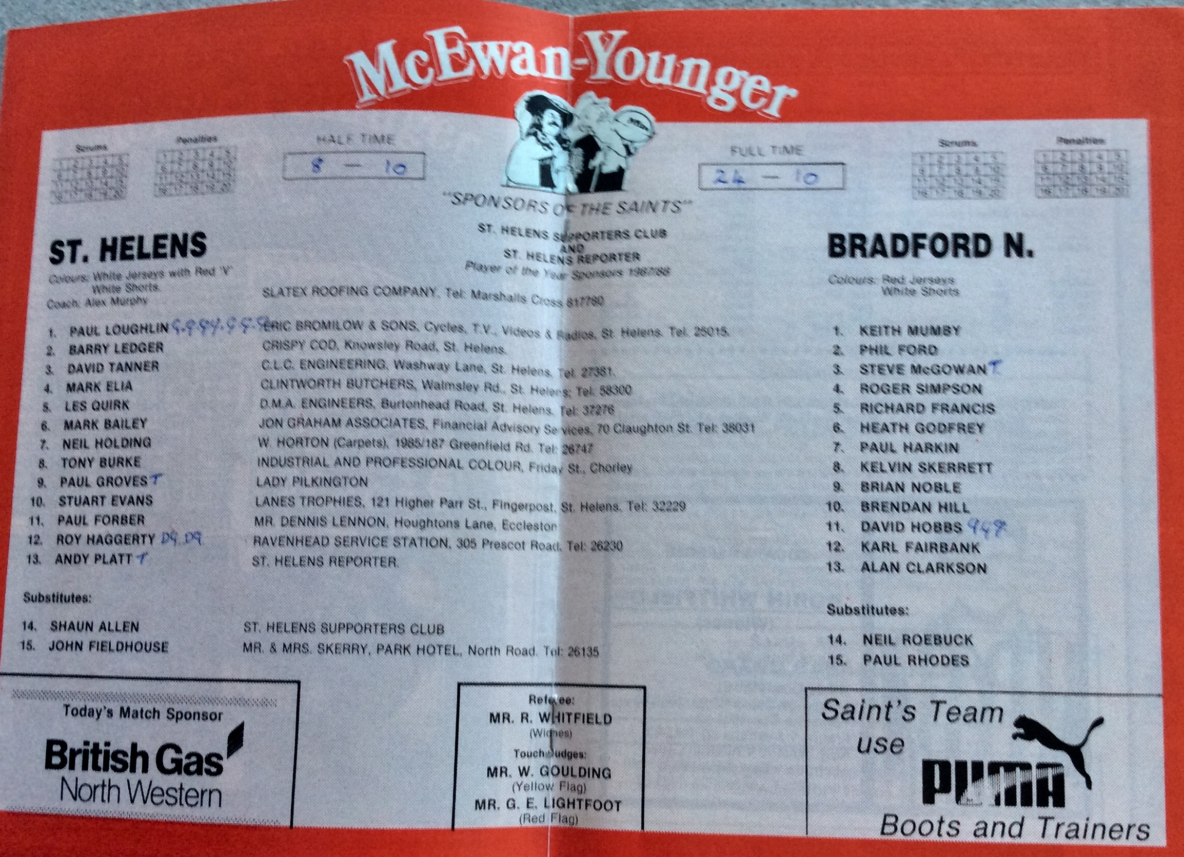 COACH : Alex Murphy![]() (1985-11-01 : 1990-01-31 ) |